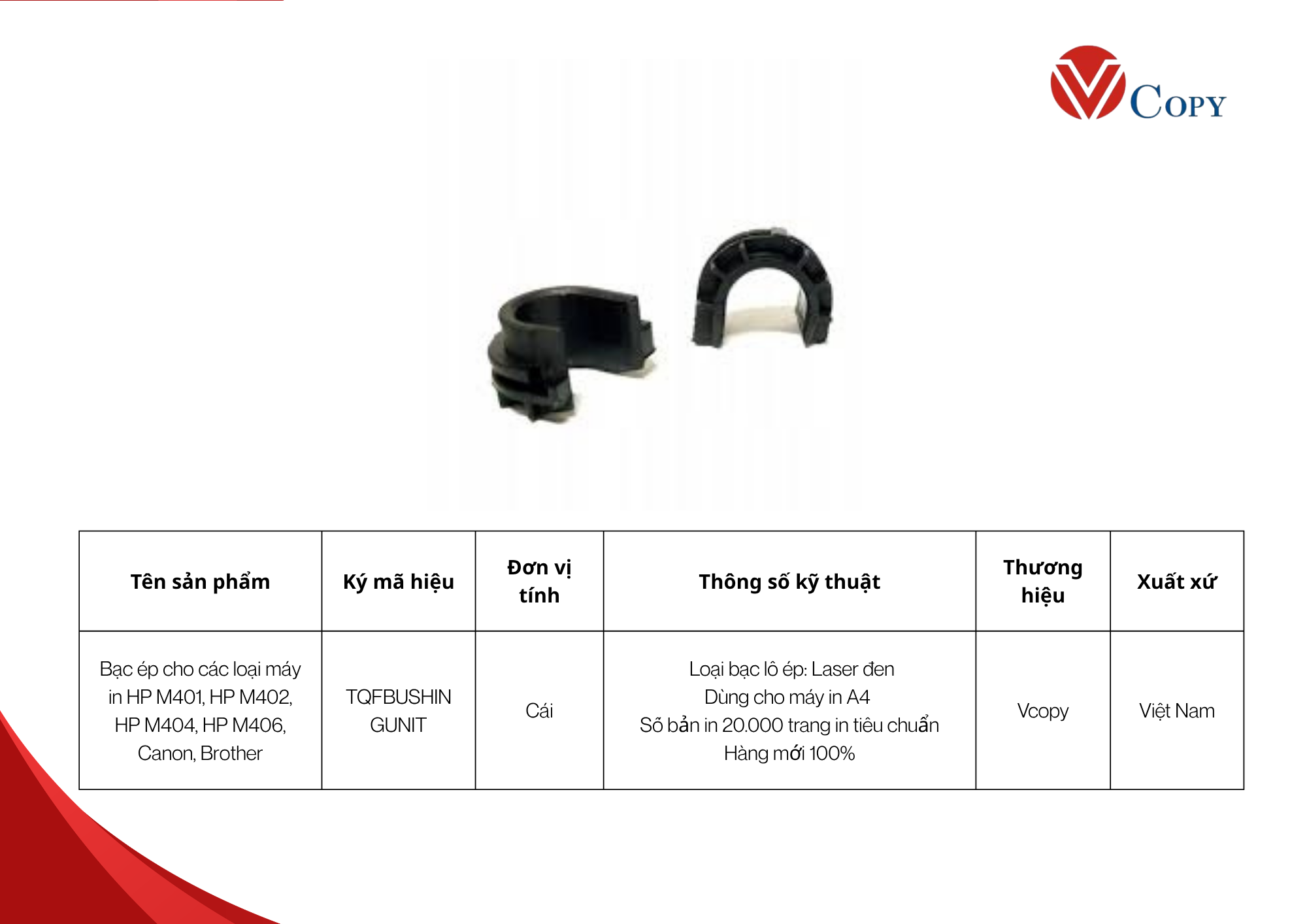 - Tên sản phẩm: Bạc ép cho các loại máy in HP M401, HP M402, HP M404, HP M406, Canon, Brother