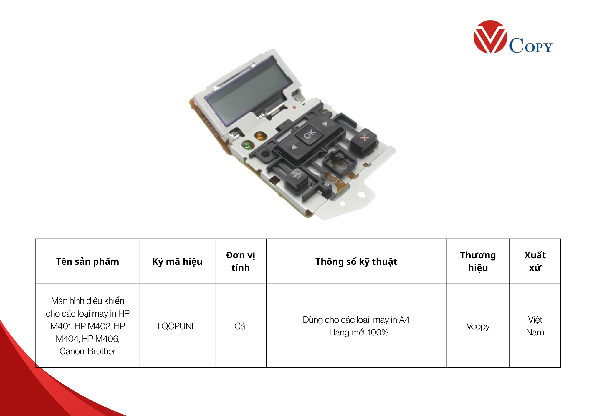 - Tên sản phẩm: Màn hình điều khiển cho các loại máy in HP M401, HP M402, HP M404, HP M406, Canon, Brother